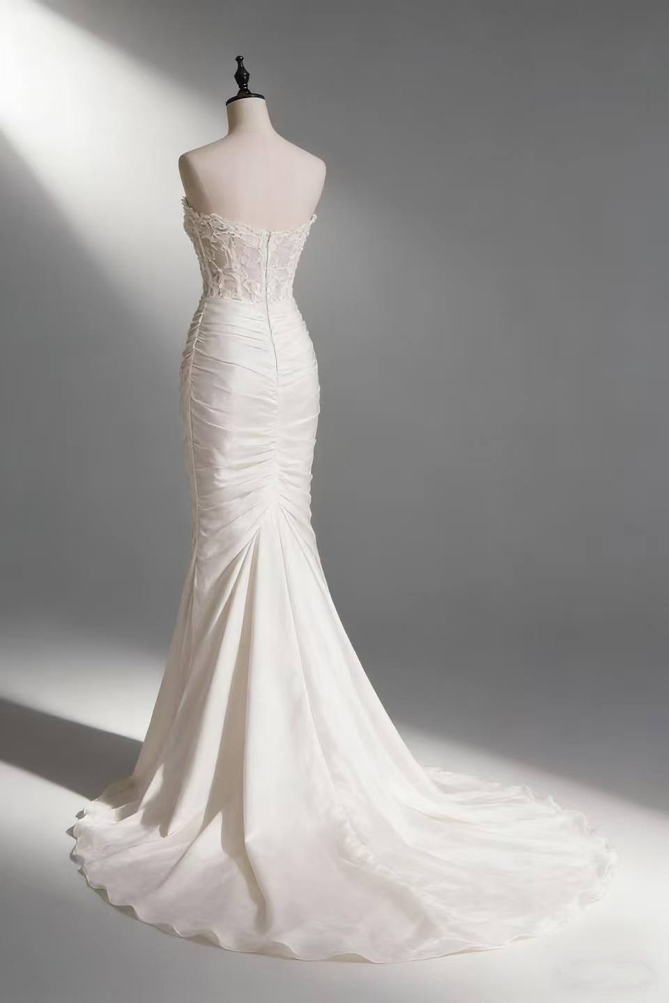 Elegant strapless mermaid wedding dress, crafted for Hawaiian brides.